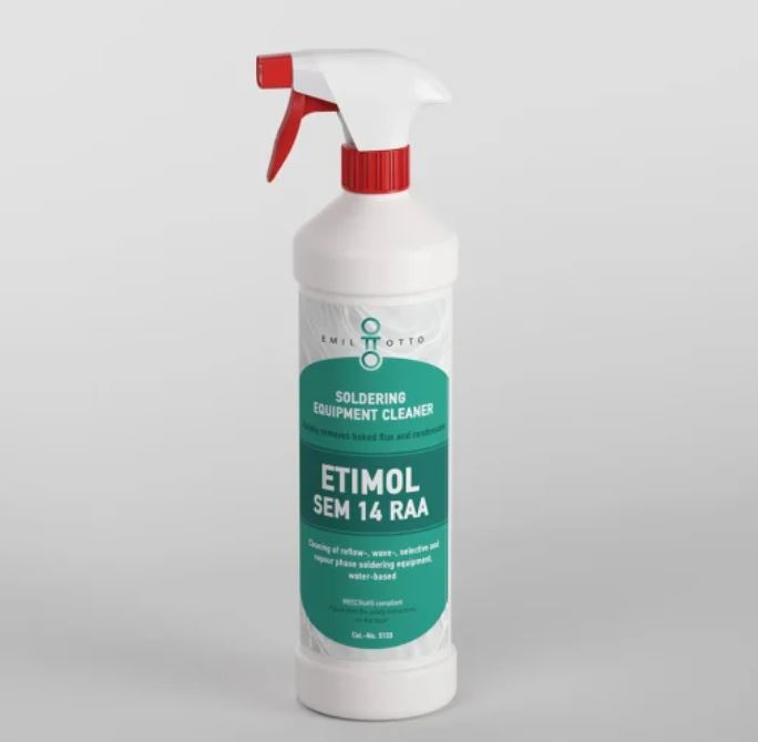 全新登場的 Etimol SEM 14 RAA——專為電子製造業打造的頂尖焊接設備清潔解決方案! 這款採用鹼性pH配方的最先進清潔劑,專為滿足現代焊接製程的高標準而研發。Etimol SEM 14 RAA以豐富綿密的泡沫與強勁的清潔力著稱,能輕鬆去除頑固的助焊劑殘留與冷凝物,讓設備恢復最佳狀態。 此外,它的氣味柔和、不刺激,為操作環境帶來更舒適的使用體驗。選擇 Etimol SEM 14 RAA,讓您的焊接清潔作業更高效、更潔淨、更安心!更多資訊,請點此連結。 上一個 回列表 下一個